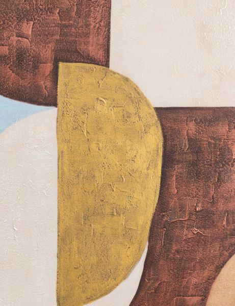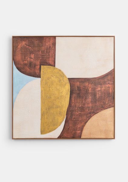 Voor schilderij Annabel van COCOmaison vind je altijd wel een plaatsje toch? Met dikke acrylverf zijn geometrische figuren geschilderd op canvas. Het schilderij meet 80x80cm en is gevat in een strakke houten lijst. De kleuren zijn zo gekozen dat ze met heel veel materialen en andere kleuren matchen: crème, okergeel, roodbruin en lichtblauw. Door de abstracte vormen en natuurlijke tinten brengt deze wanddecoratie rust in je interieur en tegelijk kun je er eindeloos naar blijven kijken. Fraai boven de bank, in een saaie hoek van de woonkamer, in de gang of boven je bed! Voor nog meer impact combineer je het met schilderij Annemijn in dezelfde stijl.