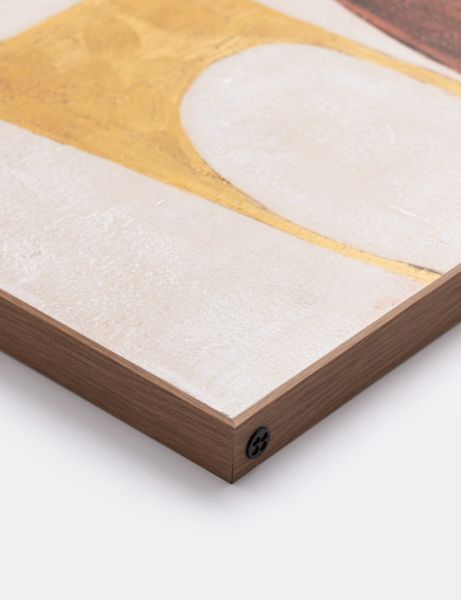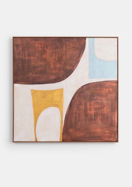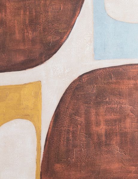 Voor schilderij Annemijn van COCOmaison vind je altijd wel een plaatsje toch? Met dikke acrylverf zijn geometrische figuren geschilderd op canvas. Het schilderij meet 80x80cm en is gevat in een strakke houten lijst. De kleuren zijn zo gekozen dat ze met heel veel materialen en andere kleuren matchen: crème, okergeel, roodbruin en lichtblauw. Door de abstracte vormen en natuurlijke tinten brengt deze wanddecoratie rust in je interieur en tegelijk kun je er eindeloos naar blijven kijken. Fraai boven de bank, in een saaie hoek van de woonkamer, in de gang of boven je bed! Voor nog meer impact combineer je het met schilderij Annabel in dezelfde stijl.