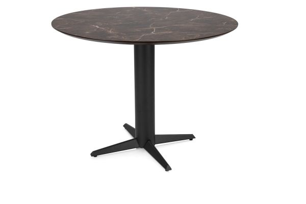 Caletta, bartafel rond 120 cm. - HPL Primo Laminato blad - centrale teenpoot zwart