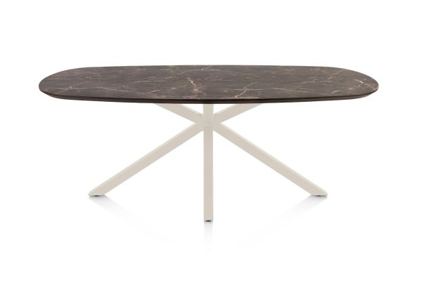 Caletta, eetkamertafel ovaal 210 x 100 cm. - HPL Primo Laminato blad - centrale kruispoot crème