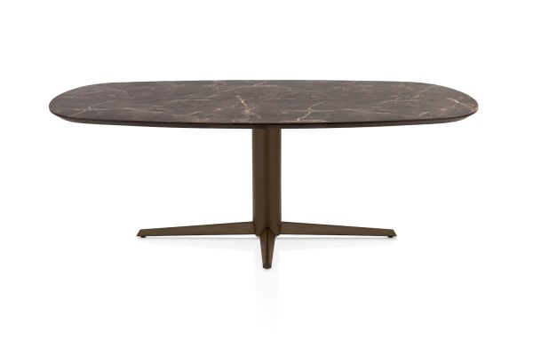 Caletta, eetkamertafel ovaal 210 x 100 cm. - HPL Primo Laminato blad - centrale teenpoot steelbrown