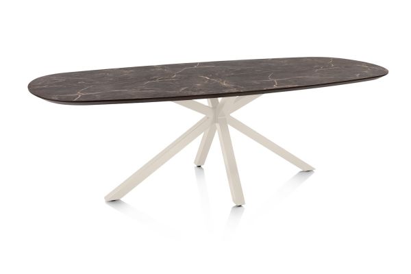 Caletta, eetkamertafel ovaal 240 x 105 cm. - HPL Primo Laminato blad - centrale kruispoot crème