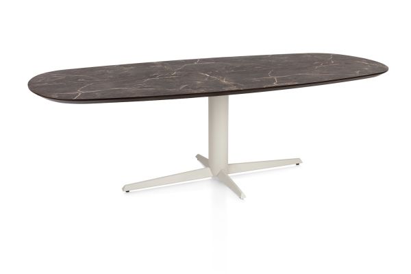 Caletta, eetkamertafel ovaal 240 x 105 cm. - HPL Primo Laminato blad - centrale teenpoot crème