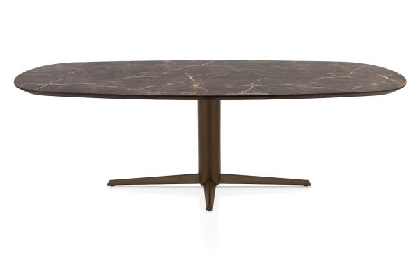 Caletta, eetkamertafel ovaal 240 x 105 cm. - HPL Primo Laminato blad - centrale teenpoot steelbrown
