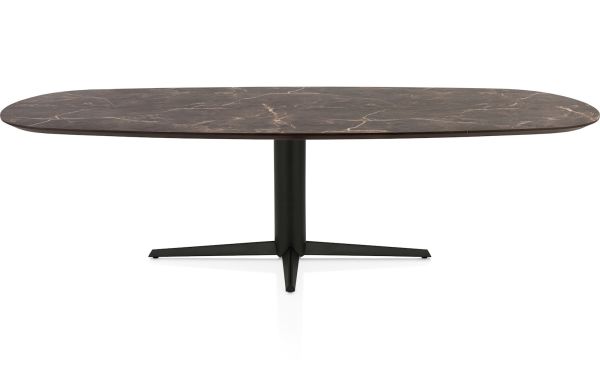 Caletta, Eetkamertafel ovaal 270 x 110 cm. - hpl primo laminato blad - centrale teenpoot rough off black