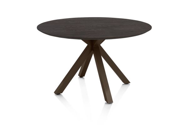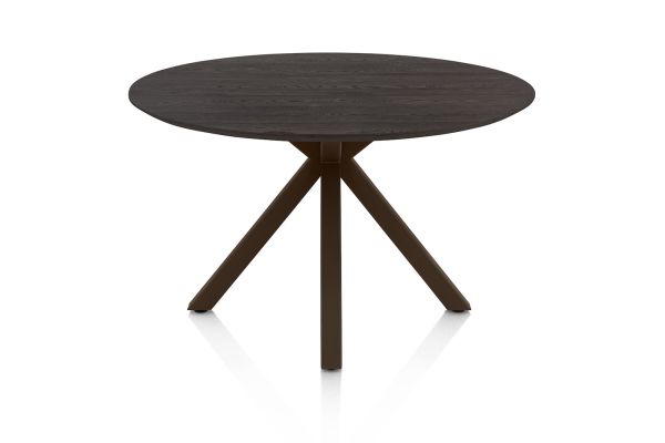 Caletta, Eetkamertafel rond 120 cm. - eiken blad - centrale kruispoot steelbrown