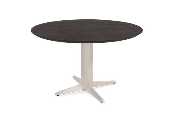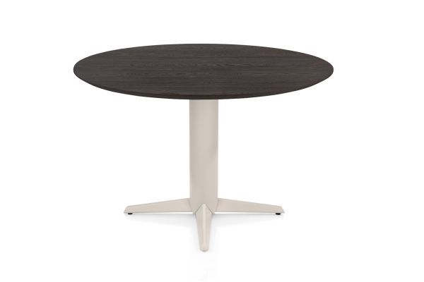 Caletta, eetkamertafel rond 120 cm. - eiken blad - centrale teenpoot crème