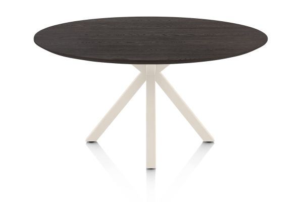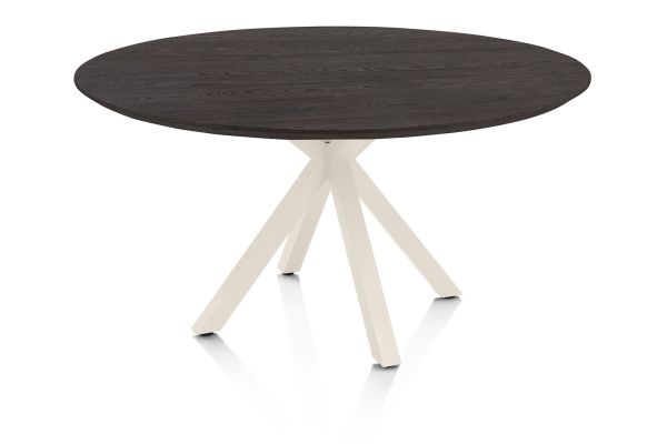 Caletta, eetkamertafel rond 150 cm. - eiken blad - centrale kruispoot crème