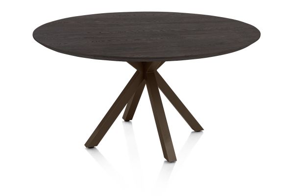 Caletta, eetkamertafel rond 150 cm. - eiken blad - centrale kruispoot steelbrown