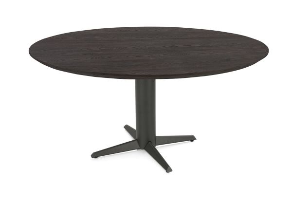 Caletta, eetkamertafel rond 150 cm. - eiken blad - centrale teenpoot grafiet