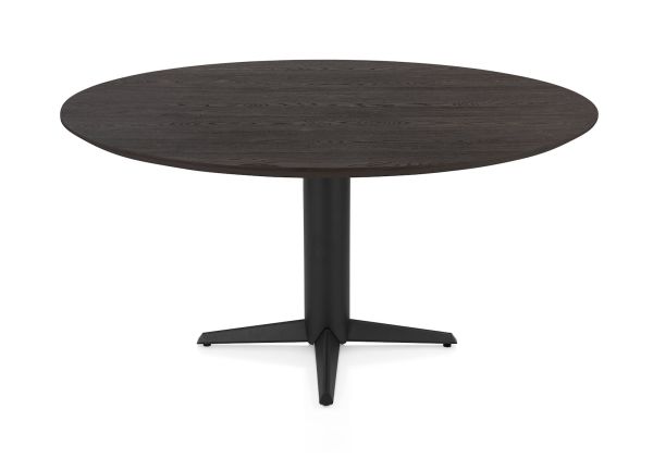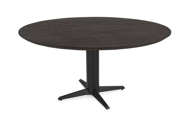 Caletta, eetkamertafel rond 150 cm. - eiken blad - centrale teenpoot zwart