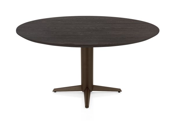 Caletta, Eetkamertafel rond 150 cm. - eiken blad - centrale teenpoot steelbrown