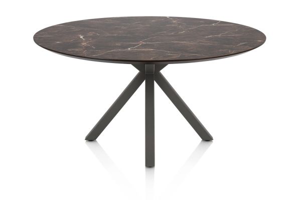 De Caletta eetkamertafel met een rond tafelblad in de kleur marble brown en een graphietkleurige kruispoot is een stijlvolle combinatie van luxe en kracht. Het marmerlook tafelblad, wat gemaakt is van HPL Primo Laminato, is krasvast en onderhoudsvriendelijk, terwijl de donkere poot zorgt voor een modern en robuust accent. Een tafel die karakter geeft aan je eetruimte.