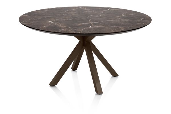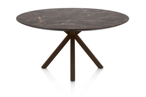 Caletta, eetkamertafel rond 150 cm. - HPL Primo Laminato blad - centrale kruispoot steelbrown