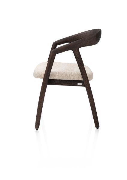 Met de armstoel DANTE de kleur eiken clay kies je voor een warme en natuurlijke uitstraling. Het massief eikenhouten frame in deze aardse tint geeft de stoel karakter en diepte, terwijl de gestoffeerde zitting in stof Cloudy beige zorgt voor elegante look. Een stijlvolle armstoel die moeiteloos sfeer brengt in zowel een modern als Scanidnavisch interieur.