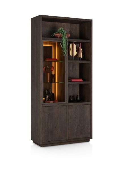 Gijon, bergkast 100 cm - 1-glasdeur + 2-deuren + 4-niches (+ LED)
