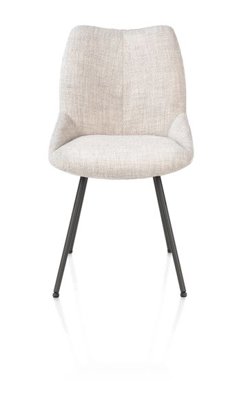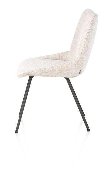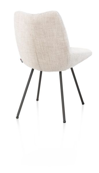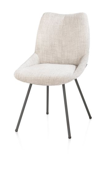 Deze MATS armstoel staat op een metalen 4-poot onderstel in de kleur grafiet. De zitting is bekleed met de stof Luton in de kleur crème. De stof voelt zacht aan en heeft een bouclé look. Het elegante contrast tussen onderstel en bekleding zorgt voor een stijlvolle look.