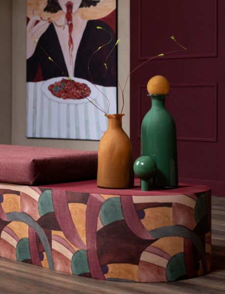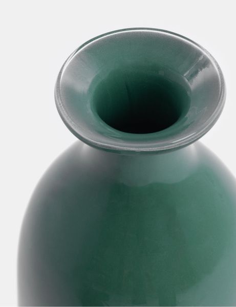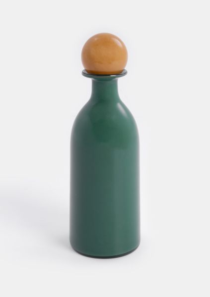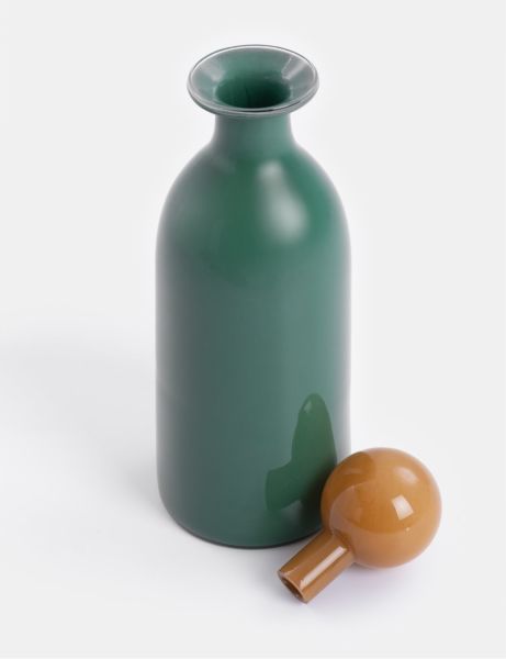 We noemen het bij COCOmaison een vaas, maar eigenlijk is de Mies veel meer dan dat. De pure vorm van deze groene glazen vaas, 48cm hoog, wordt letterlijk afgetopt met een prachtige okergele stop. Deze stop kun je natuurlijk gewoon op de vaas plaatsen, zodat de Mies als een sierlijke karaf oogt. Haal je de glazen stop eraf, dan kun je enkele sierlijke bloemen of takken in de vaas zetten. Maar hoe je de Mies ook noemt of gebruikt, het is een prachtig woonaccessoire waar je niet snel op uitgekeken raakt. Wil je vaas Mies extra laten opvallen, haal hem dan samen met zijn zusje in huis: de kleuren zijn precies andersom en de andere vaas is iets lager en breder. De Marthe vaas heeft hetzelfde model in de kleurencombinatie wit en paars.