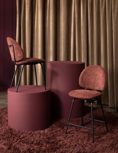Met de Milo barstoel van COCOmaison haal je comfort en stijl in huis, nu op de perfecte zithoogte voor je keuken- of bartafel. Het tijdloze design past bij vrijwel elke woonstijl, van strak modern tot stoer industrieel. De trendy stof en de prettig gevoerde zitting en rug nodigen uit om comfortabel te blijven zitten. Het slanke metalen onderstel geeft de stoel een eigentijdse touch en zorgt voor een stabiele basis. Dit is de bordeauxrode uitvoering, maar de Milo barstoel is verkrijgbaar in vier prachtige kleuren die zich perfect laten mixen en matchen. Extra leuk: Milo is er ook als eetkamerstoel, zo creëer je een mooie eenheid in je interieur.