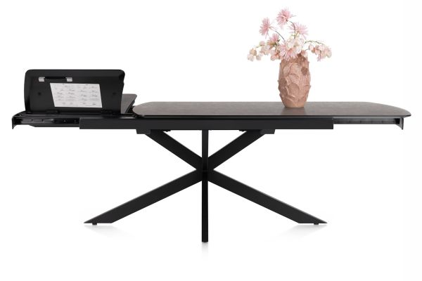Deze uitschuiftafel uit tafelcollectie Pavalon is verkrijgbaar in maar liefst 5 kleurtinten: antraciet, barnwood, driftwood, natural en roest. Dit is de versie in het antraciet. Het tafelblad is gemaakt van het onderhoudsvriendelijke Primo Laminato (HPL), een materiaal dat daarbovenop ook erg krasvast is. De tafels zijn verkrijgbaar in 3 formaten, waarvan dit het middelgrote formaat is. Deze tafel heeft een handig butterfly-uitschuifsysteem waarmee je het tafelblad van 170cm omtovert tot een echte familietafel van wel 230cm. Ideaal om ruimte te besparen!