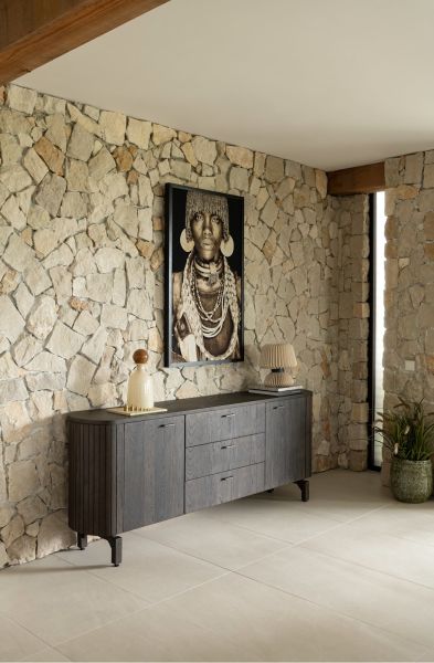 Het Ravello dressoir combineert strak design met warme details. Het eikenfineer in een diepe basaltkleur geeft het meubel een luxe en eigentijdse uitstraling. Voorzien van twee deuren en drie ruime lades met soft close systeem, biedt dit dressoir volop opbergruimte. De platinumlak met matte finish zorgt voor extra bescherming en een stijlvolle afwerking.