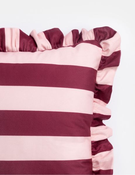 Bordeauxrood en volants zie je overal terug in het modebeeld. Dus waarom niet thuis op de bank? Dit hippe Riva kussen met brede streep in rood en roze maakt van jouw huis meteen een feestje. Met 43x43cm heeft hij een handig formaat en laat hij zich prima combineren met andere sierkussens uit de COCOmaison collectie. We hebben kussens in dezelfde kleurencombinaties, maar ook kussens in bijpassende kleuren in diverse afmetingen. Bordeauxrood is sowieso een kleur die je momenteel veel ziet in woonaccessoires en je huis direct een graadje warmer maakt!