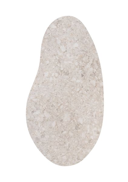 De ROTA salontafel is uitgevoerd met een keramisch blad met terrazzo motief en een organisch gevormd ontwerp. Het crèmekleurige metalen onderstel bestaat uit slanke buizen met een vierkante belijning en geeft de tafel een luchtige uitstraling. Dankzij de neutrale kleuren en materialen past ROTA moeiteloos in verschillende interieurs en is hij goed te combineren met de bijzettafel uit dezelfde serie.