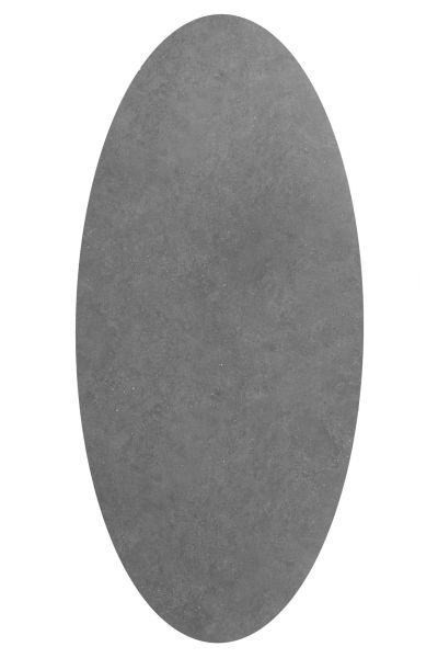 Deze SALUTI eettafel heeft een ellipsvormig tafelblad van 210 x 105 cm en staat op een metalen 4-poot onderstel in de kleur off-black. Het blad is uitgevoerd in de kleur steenlook antraciet en gemaakt van hoogwaardig MDF met een Primo Laminato (HPL) afwerking. Dit materiaal is krasvast en bestand tegen hoge temperaturen. Dankzij de ellipsvorm is de tafel prettig in gebruik en schuif je comfortabel aan.