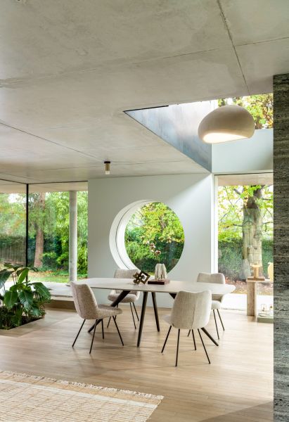 Deze SALUTI eettafel heeft een organisch tafelblad van 240 x 120 cm en staat op een metalen centrale poot in de kleur off-black. Het tafelblad is uitgevoerd in de kleur steenlook antraciet en gemaakt van hoogwaardig MDF met een Primo Laminato (HPL) afwerking. Dit materiaal is krasvast, bestand tegen hoge temperaturen en eenvoudig te onderhouden. De asymmetrische vorm doorbreekt rechte lijnen in het interieur en geeft de tafel een eigen karakter.