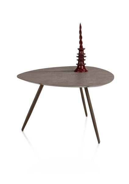 Geef je woonkamer een speelse twist met deze salontafel uit de SALUTINA-serie. Het blad van 68 x 68 cm is uitgevoerd in hoogwaardig MDF met een HPL-afwerking in de kleur lava. De tafel staat op drie metalen pootjes in de kleur steelbrown en heeft een afgeronde vorm die zorgt voor een luchtig, speels effect. Deze tafel is leuk te combineren met andere tafels uit de SALUTINA-serie.