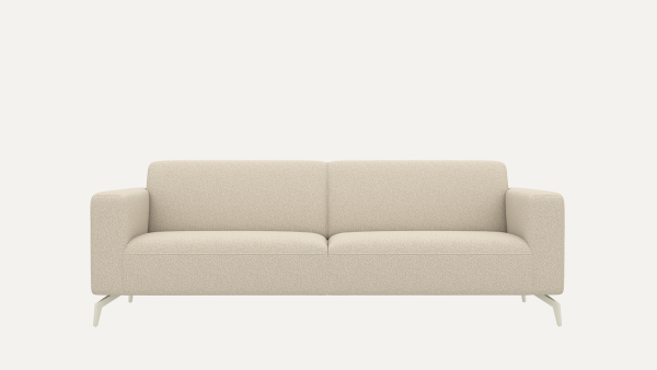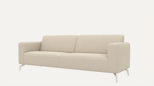 Deze ruime TWIST 4-zits straalt elegantie uit. De bank is bekleed in boucléstof Brioni in de kleur kiezel en rust op metalen designpoten in de trendy kleur silk grey. Met zijn afgeronde lijnen en zachte zit door de standaard pocketvering, past hij perfect in een modern interieur.